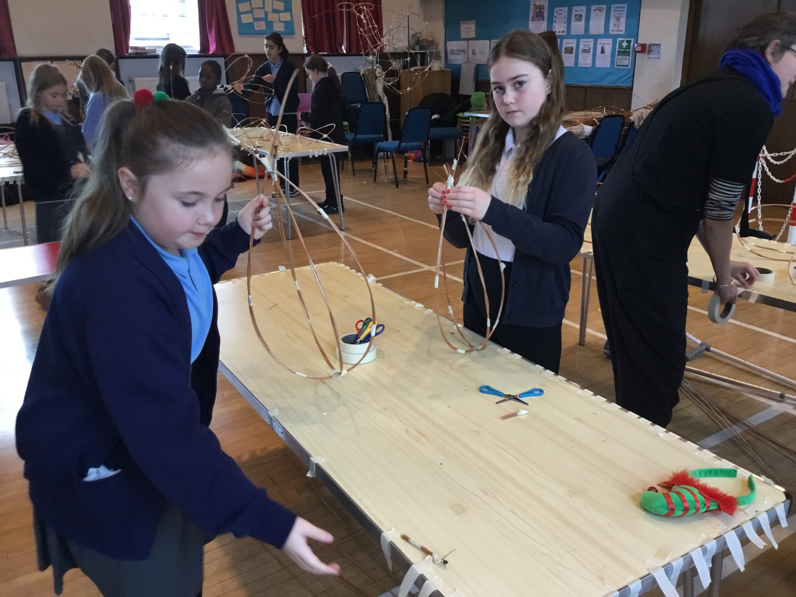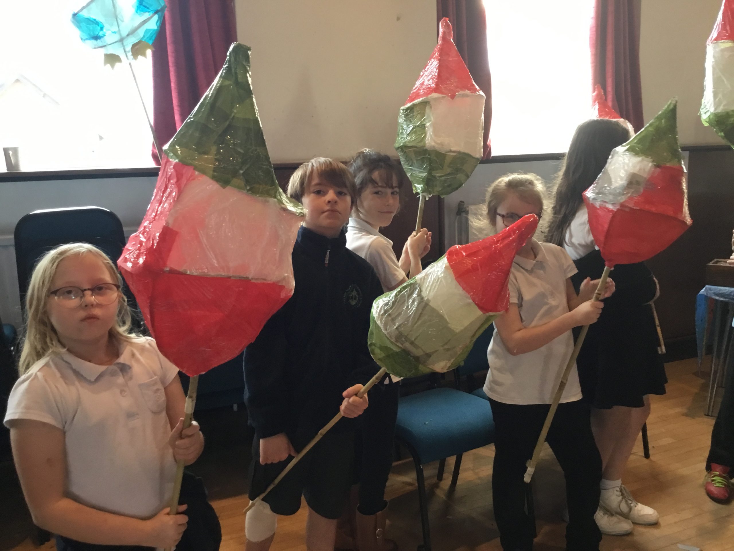 Firstly, we attended a workshop run by Karol and the Creation Myths Puppets team in order to create our lanterns for the parade. This year’s theme was ‘The Wild Creatures Are Coming to Town’ and we were the gnomes. Alongside another local school, we spent the day crafting with willow to create our gnome frame and structure before decorating it with tissue paper. We worked together as a team to ensure that everyone was successful- it was amazing seeing the children supporting one another and as always the adults got stuck in too!