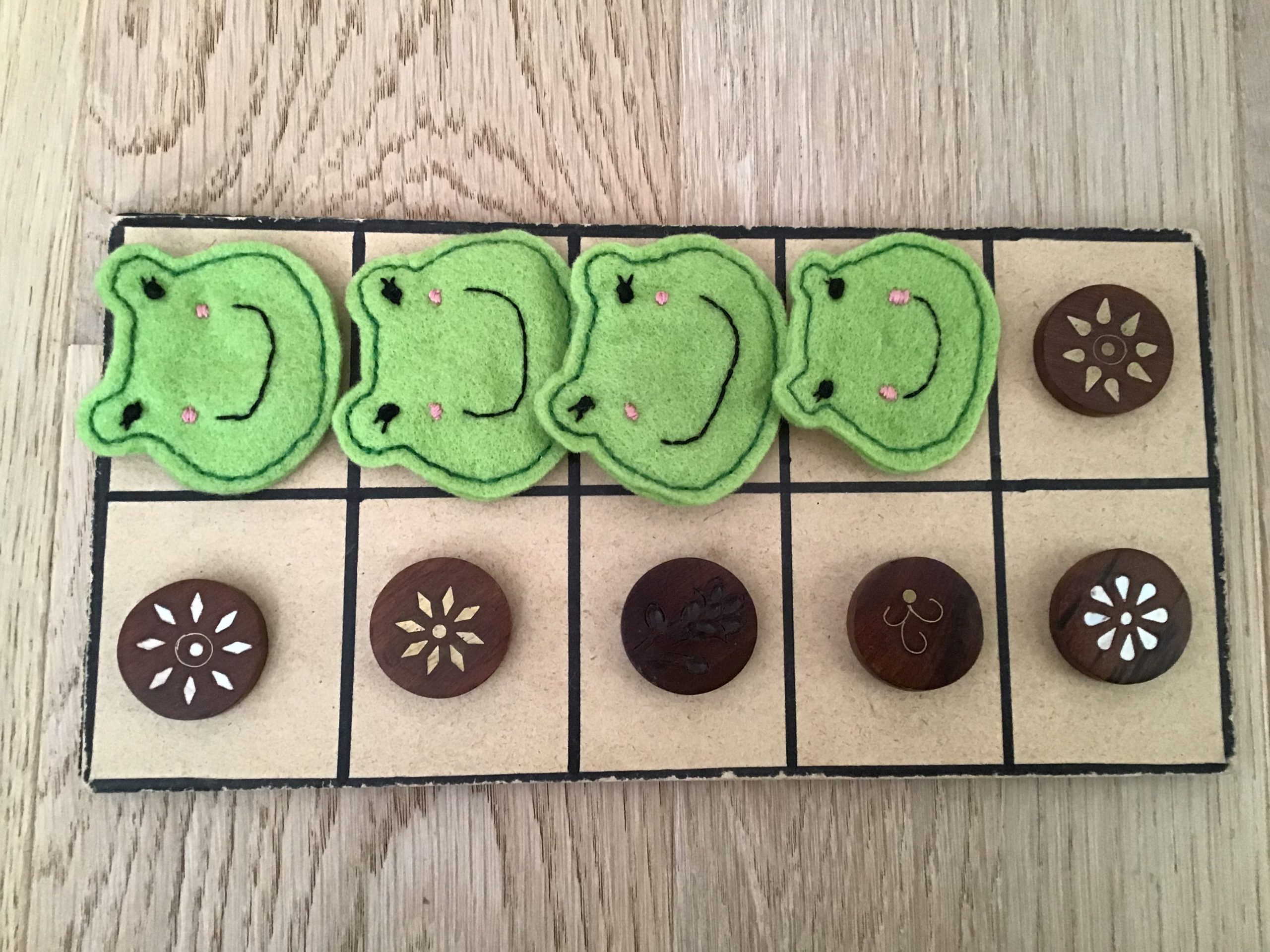- 6 wooden circles and 4 felt frogs