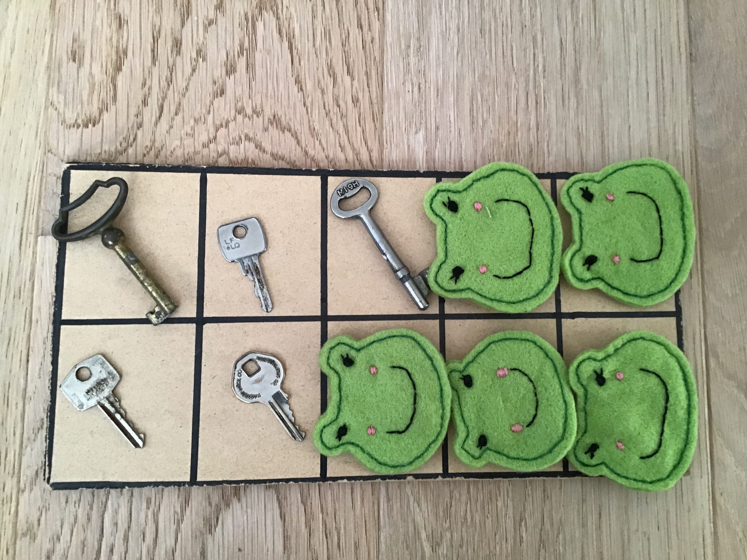 - 5 keys and 5 green frogs