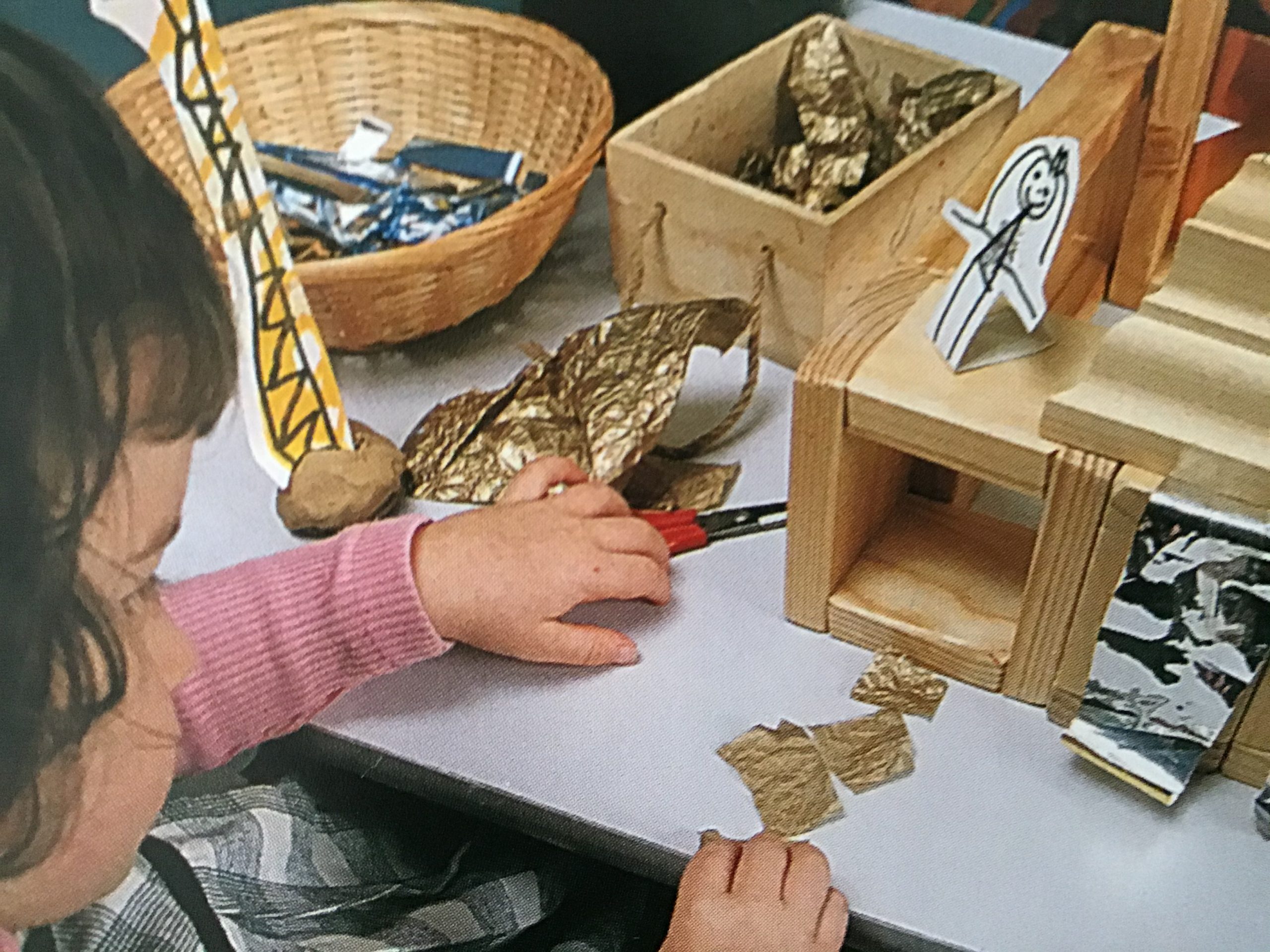 I know some children do not like the texture of playdough on their hands but you can create small world imaginary areas from just setting out bricks a range of boxes, tubs and old rolls of wallpaper. Rolls of wallpaper always make great roads and allows a large drawing space.