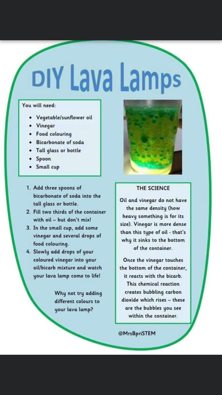 Tomorrow Mrs Breakwell is going to lead a session on making a Larva Lamp at school, so I thought you might like to explore making one at home.