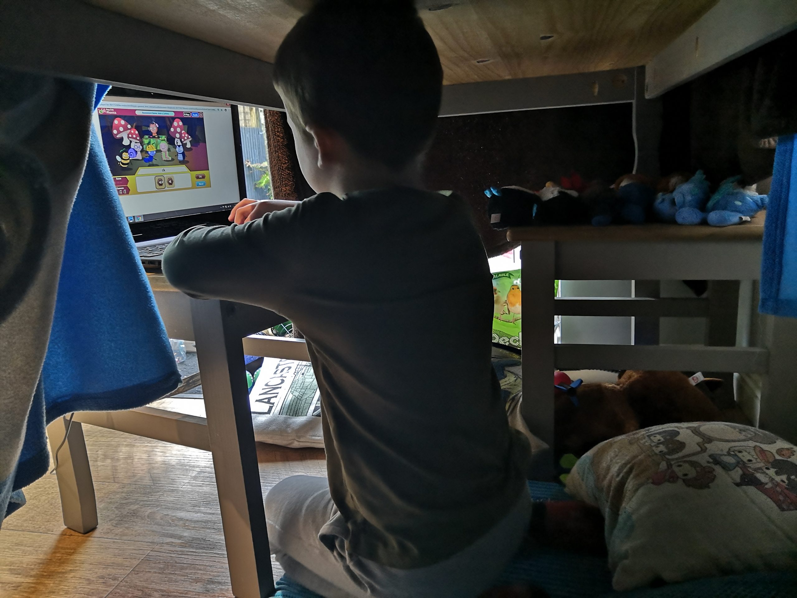 - Guy finds his den a quiet space to do his Bug club activities.
