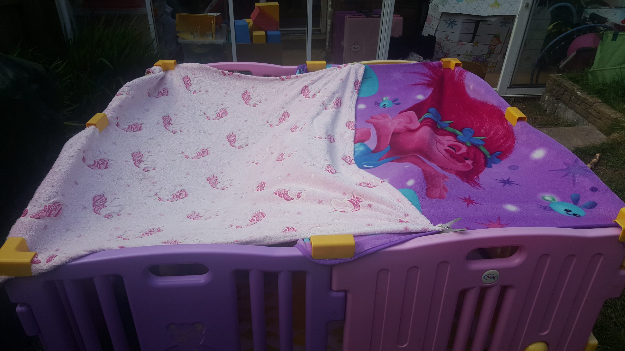 - It’s simple! A table some towels and a blanket!