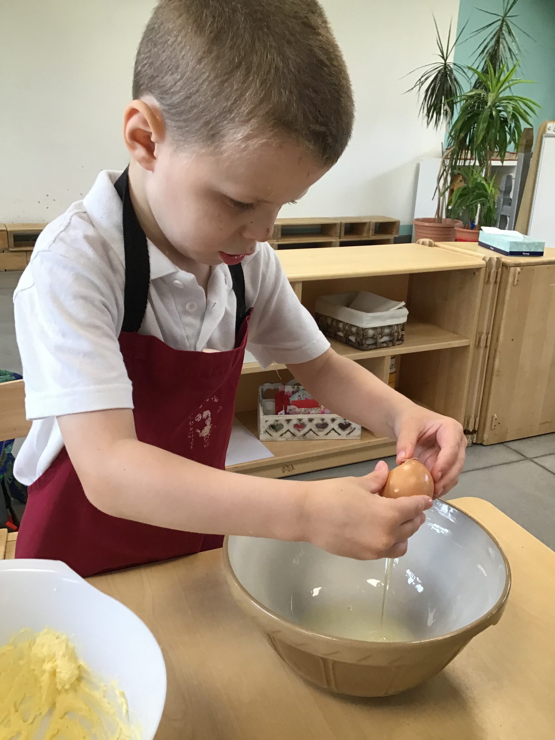 - cracking an egg all by my self