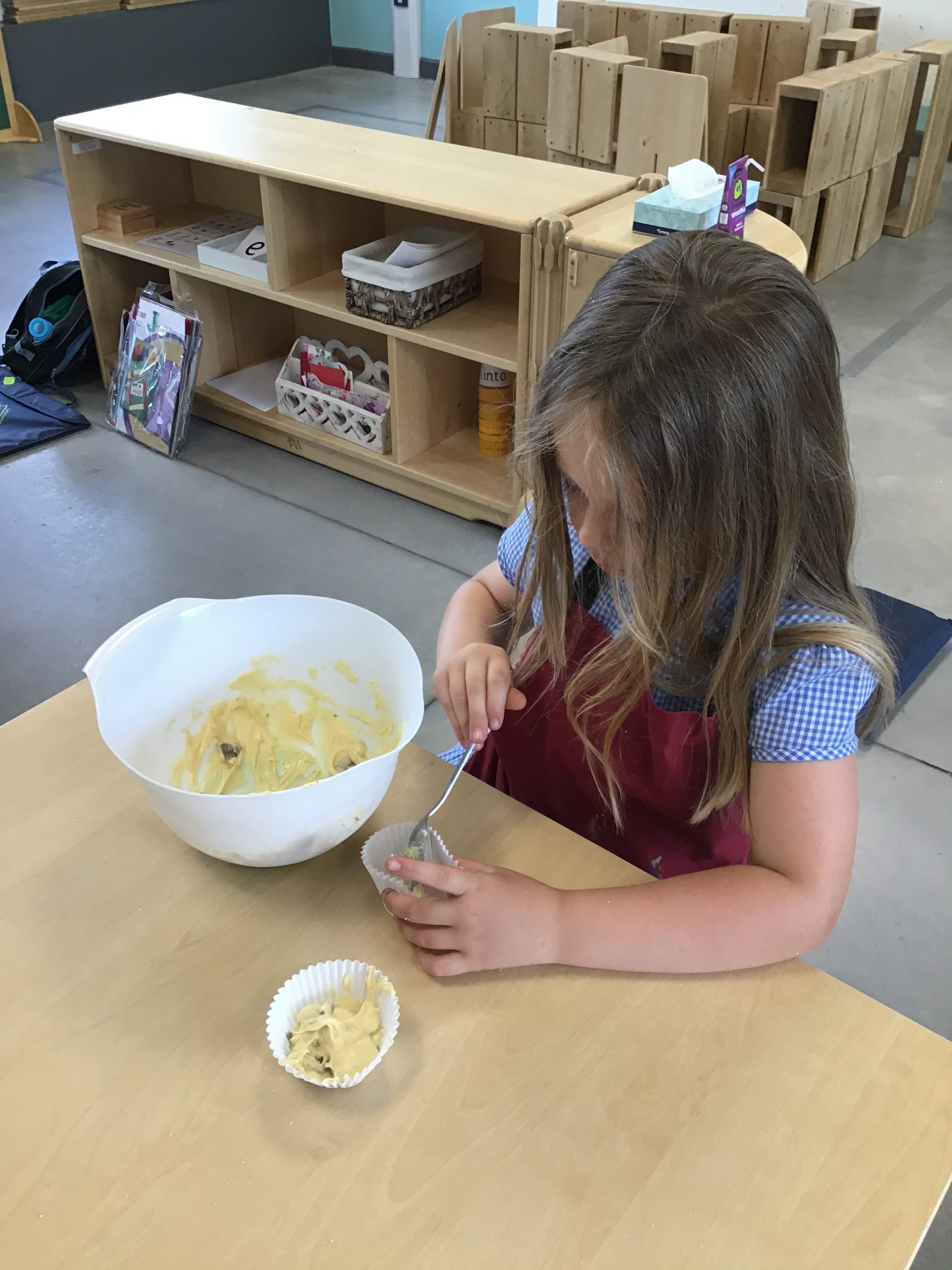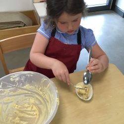 - Spooning into the cake cases