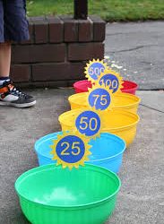 Try using wet sponges and and throw them into different sized bowls or buckets add a number to each bowl or bucket who gets the biggest score!