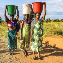 Local women carrying buckets on their heads, Malawi, Africa