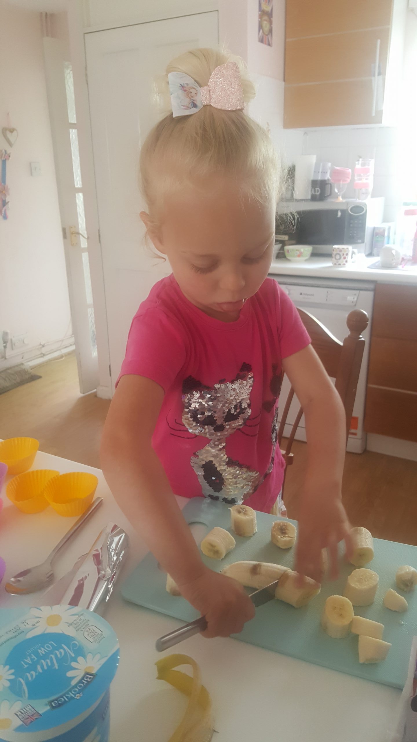 - Chopping up the banana